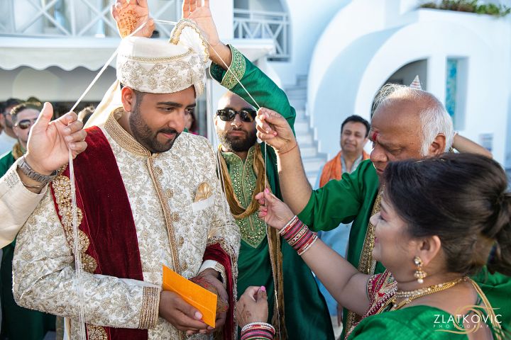An Indian couple. They decided to combine their traditions together with the unique beauty of Santorini. The result was amazing!!!