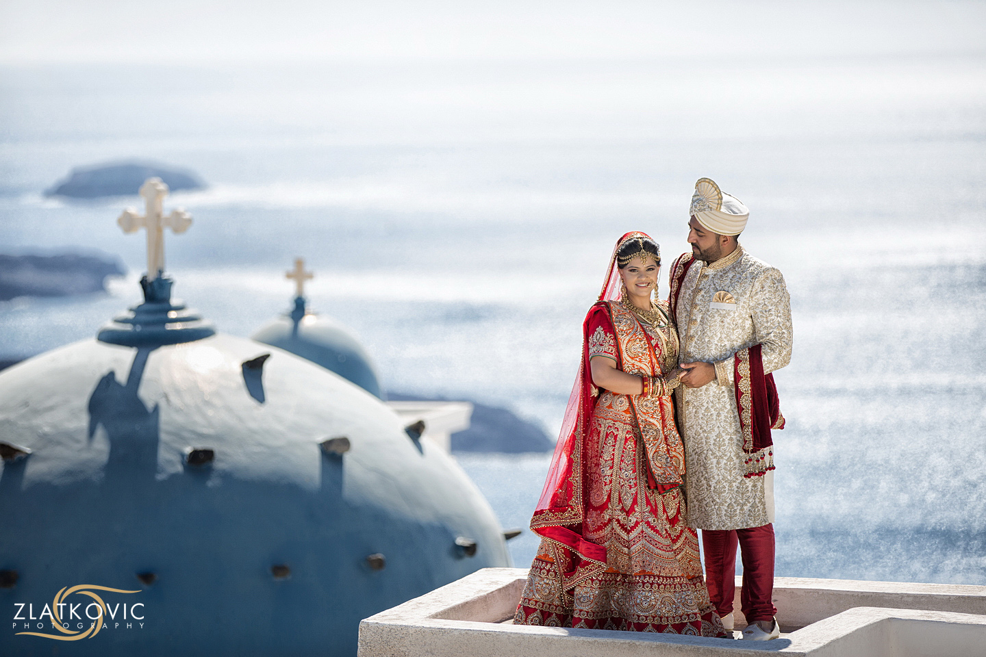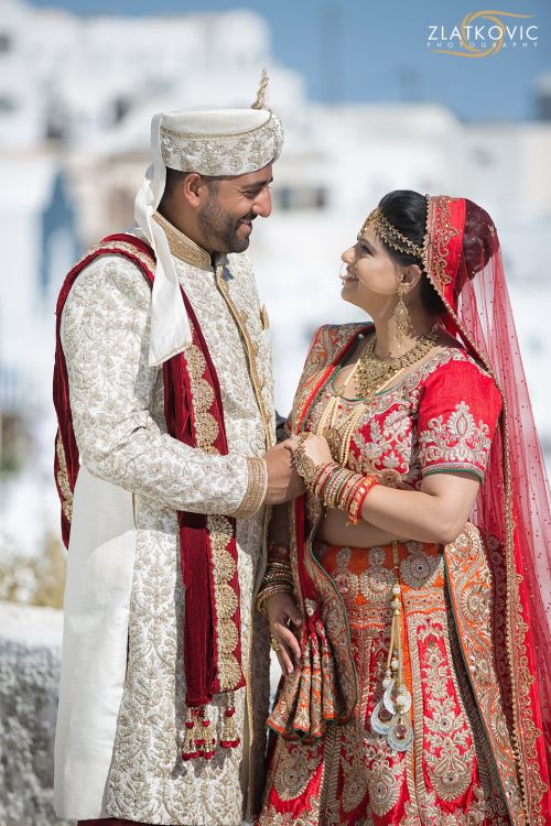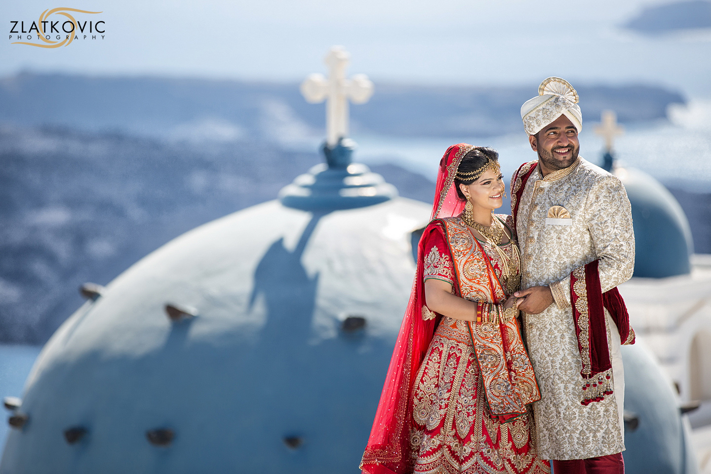 An Indian couple. They decided to combine their traditions together with the unique beauty of Santorini. The result was amazing!!!